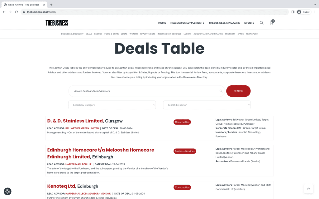 All major deals will be published quarterly in print format in The Business Magazine  distributed with The Sunday Times Scotland. The bumper for 2025 will be published in the spring edition on April 12th, 2026.