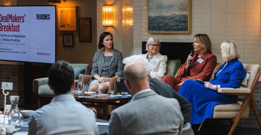 The Business Dealmakers’ Breakfast panel at the Hoxton in Edinburgh on Wednesday 22 April, chaired by Colette Grant, with Lindsay Campbell, Lucinda Bruce-Gardyne and Claudia Cavalluzzo, offered an array of ‘Expert Insights’.