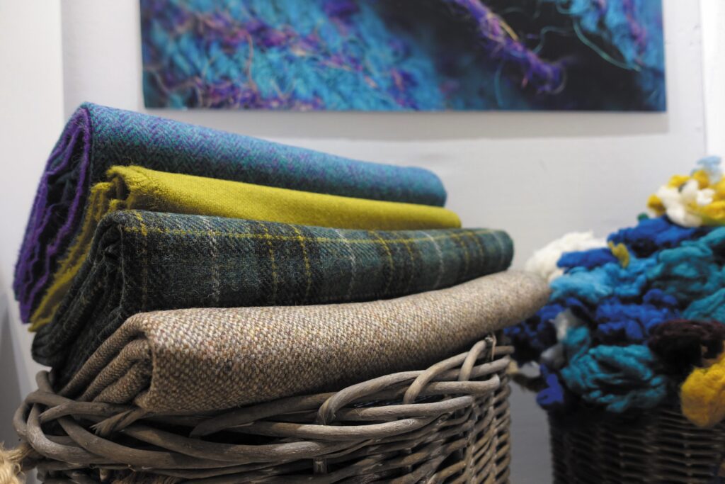 Just off Edinburgh’s bustling Royal Mile there is a small community of artisan shops. There is a bagpipe maker, a leather maker plying the ancient skills of the cordiner, a tattoo artist, and also a showcase for those interested in discovering more about home-grown Scottish textiles.